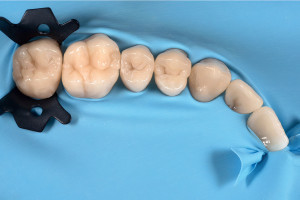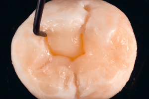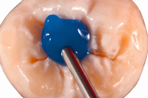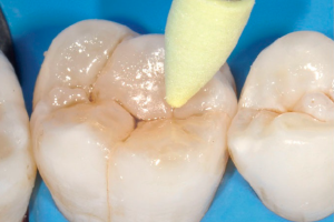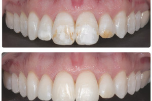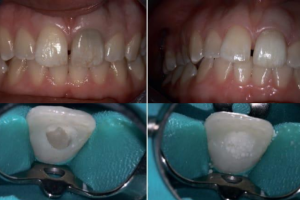 Испытуемый изначально принимал минеральные добавки казеин-кальций-фосфата. Неопубликованные лабораторные изображения, собранные в рамках ранее опубликованного исследования, отражают результаты влияния фосфата кальция на молярно-резцовую гипоминерализации и указывают на то, что эта процедура является обязательной при средних/тяжелых степенях тяжести. До восстановления дефекта проводилось отбеливание переднего сегмента с помощью биоактивированного Opalescence Boost. В качестве маскирующего агента использовали Filtek Supreme Ultra Universal Restorative, а в качестве последнего слоя - эмаль Filtek A2.